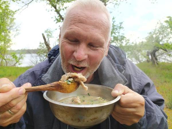 Під час моїх експедицій, крім власних кулінарних «алхімічних» творінь, не обходилося без випробування місцевих рибних страв, у яких змішувалися різні компоненти та поєднувалися різні смаки. Зрозуміло, крім дегустації, переймалися і рецептурні родзинки приготування рибних «мішанок».