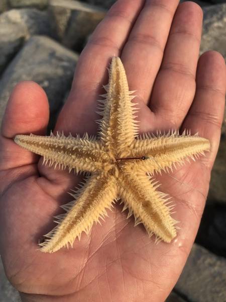 Рот у зірки знаходиться в середині тулуба, між променями. Вона жадібно заковтнула гачок з наживкою, довелося повозитись, щоб його звільнити.