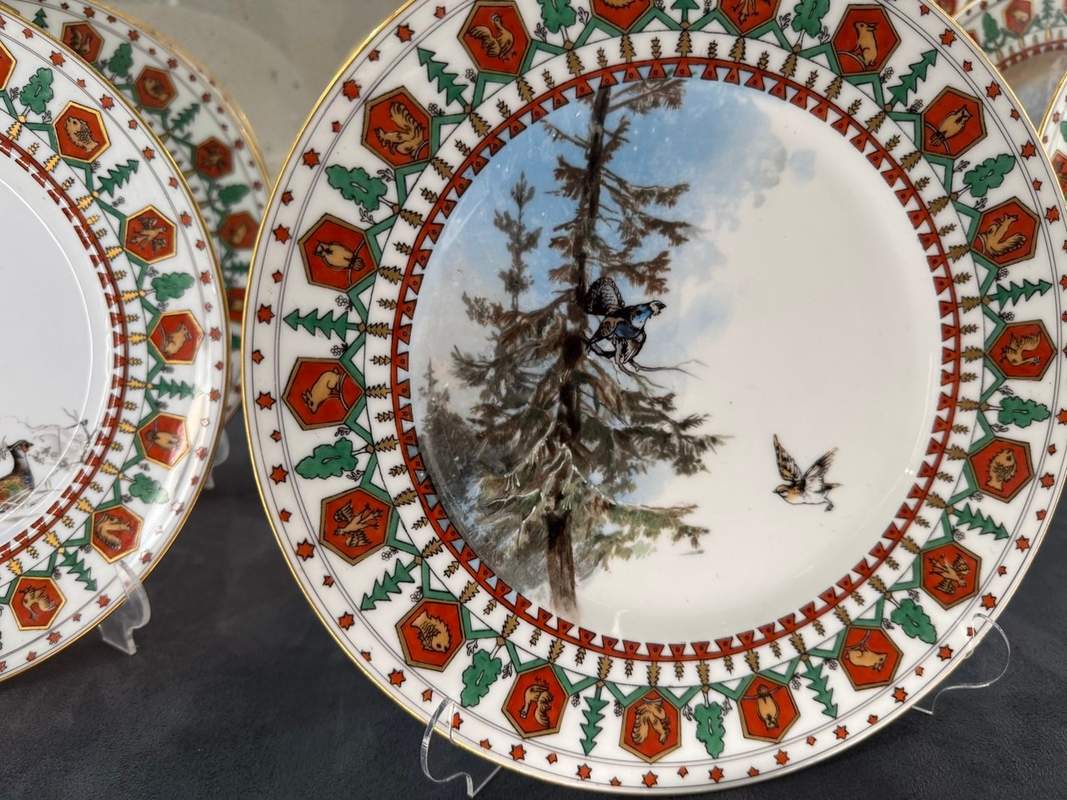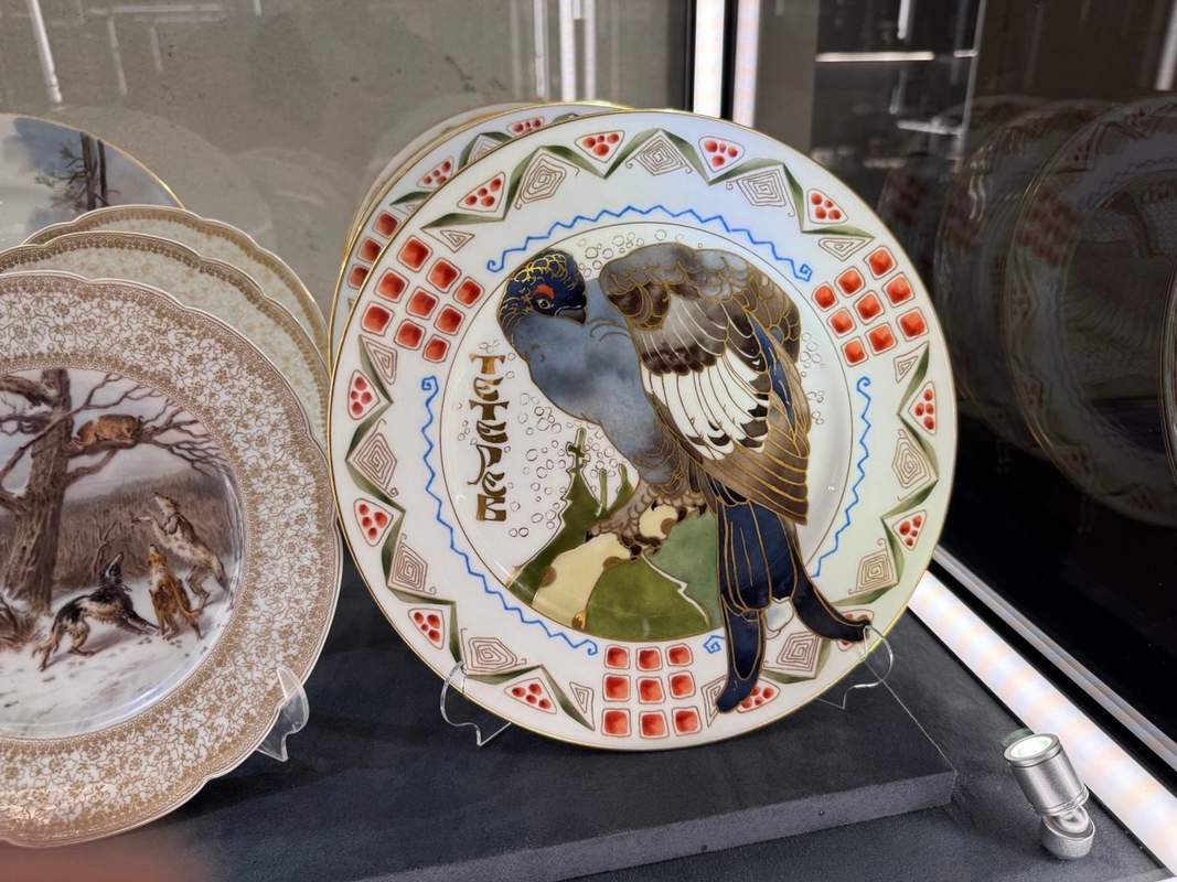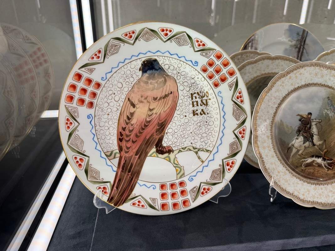 Але є у цих зборах предмети-легенди. Подивіться на ці чарочні передачі, комп'ютери та тарілки. Це частини знаменитого «Мисливського сервізу». Того самого, що Катерина Велика замовила Мейсена для свого фаворита графа Григорія Орлова. Російські імператори доповнювали цей сервіз століттями – і маємо предмети з вензелями Миколи I і Олександра II. Предмети, які пам'ятають руки Романових.