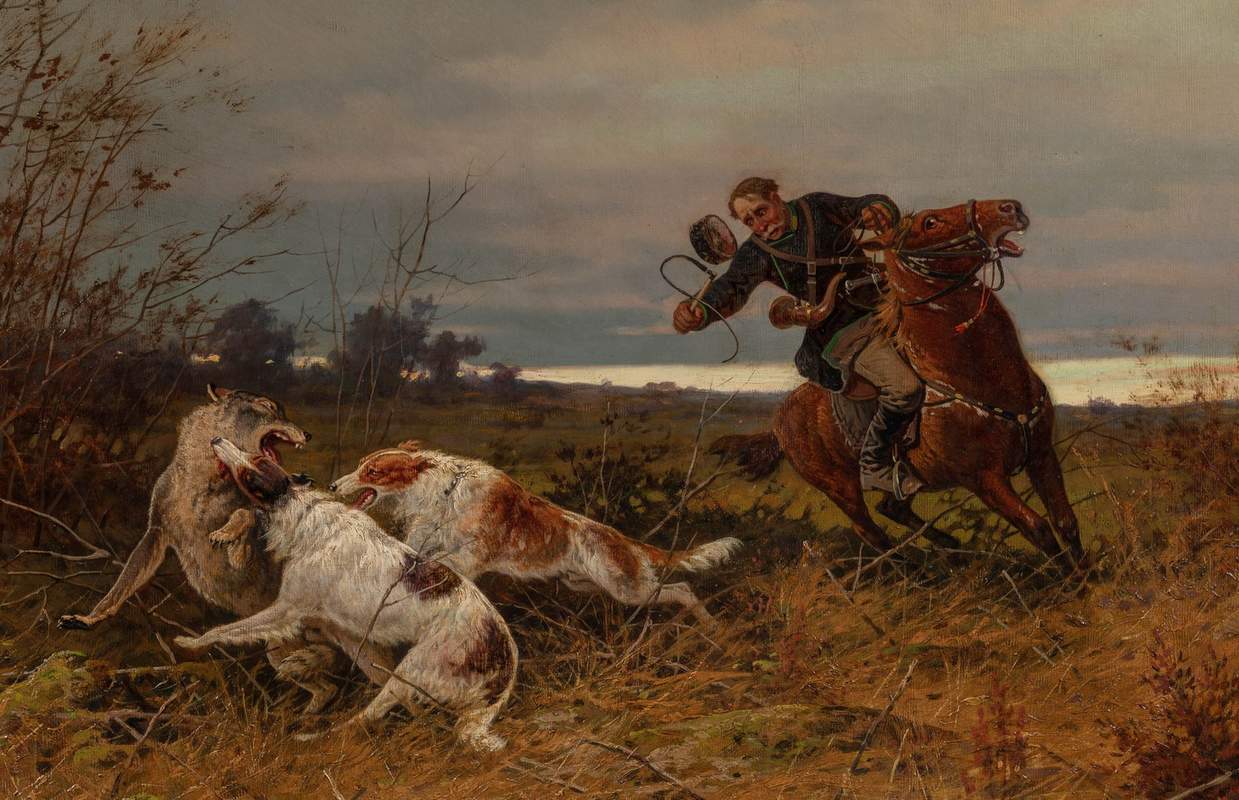 Це драма, вморожена в полотно. Іван Іванович Шишкін (1832-1898). Співак російського лісу. Його офорт «Мисливець на болоті» 1873 року – рідкісний другий стан. Тут він постає як живописцем, а й віртуозним гравером, чия лінія передає безкрайній простір батьківщини. Поруч із ними – Рудольф Френц (1831–1918), німецький барон на службі трьох імператорів. Його монументальне полотно “Великий князь Володимир Олександрович на полюванні на вовка” – це парадний портрет імператорської сім'ї в дії. Адольф Макепранг виріс серед природи та присвятив творчість зображенню тварин. А Олександр Маковський – академік Імператорської Академії мистецтв – створював поетичні сцени народного життя, включаючи мисливські мотиви.