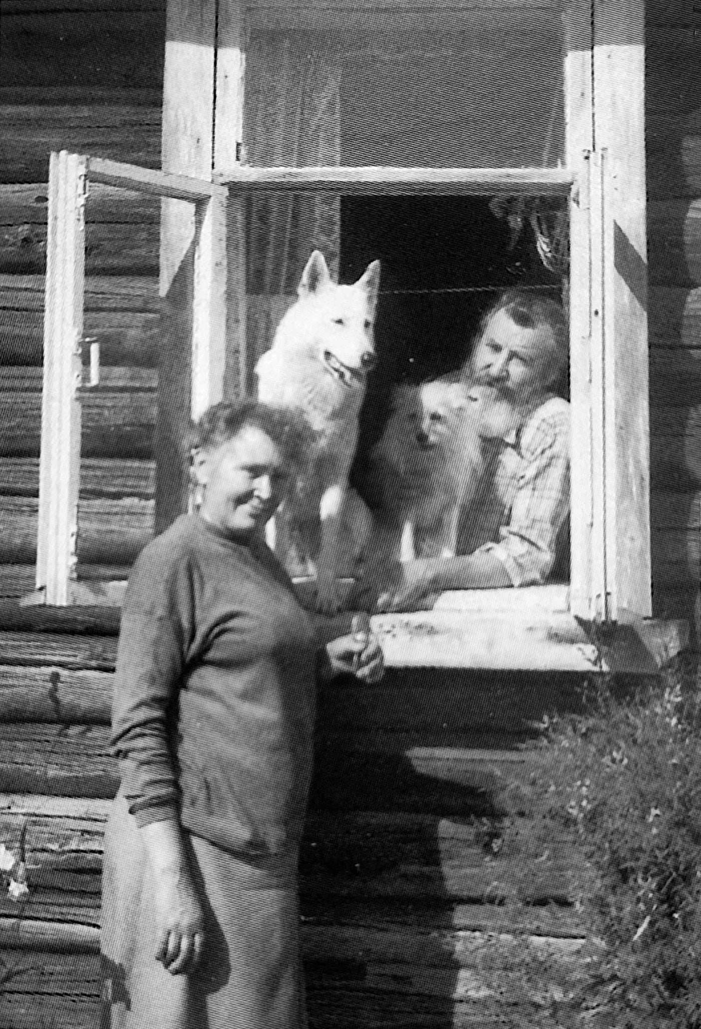 Ось замальовка з книги «Будинок під літерою „Т“»: «Коли корови заходять на болото. Помотуючи головами, хльостаючи хвостами мух і оводів, вони одного разу натрапили на ведмеже лігво. Ведмідь підвівся, обурено крекнув, і перелякані корови легко, як кози, пирснули з болота і бігли аж до хати. Коров ведмідь знає теж – і товстобоку Липу, і лінивого бичка-слинячи на прізвисько Дубок, і грайливу руду телицю Березку. Він їх не чіпає – не „пакостничає“, як кажуть у Заонежжі, – і лісник зла до нього не має. Дає спокійно доспати в барлозі до весняних бурульок, поки не підійде під його волохатий бік тала вода».