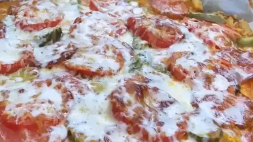 Випікайте піцу в духовці протягом 30-35 хвилин при температурі 180 градусів до появи апетитної сирної скоринки. Час залежить від товщини коржа та вашої духовки, тому починайте контролювати готовність через 20 хвилин зубочисткою.