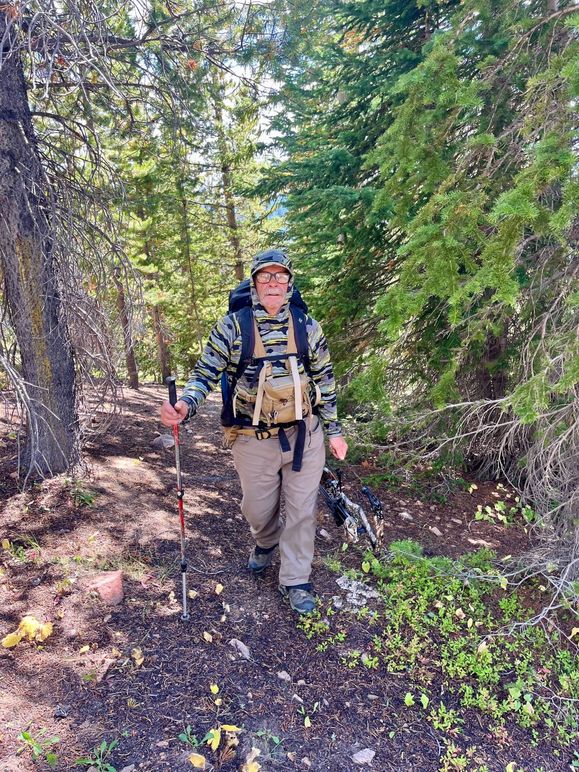 Це був початок вересня 2024 року, другий день сезону полювання на лук і цибулю в Колорадо. Карл, 65-річний маляр будинків з Вейла, тримав жетони для лосів та оленів, що підходять для обох статей, але досі не бачив жодної тварини. Сонячна спека відчувалася, як у липні. На щоках Карла були темні, жирні плями, щоб його не помітили цілі, і він був одягнений у камуфляжну толстовку з довгими рукавами та бежеві штани. Його було б майже неможливо помітити, якби не його 75-літровий блакитний рюкзак, який можна було замаскувати лише в океані.